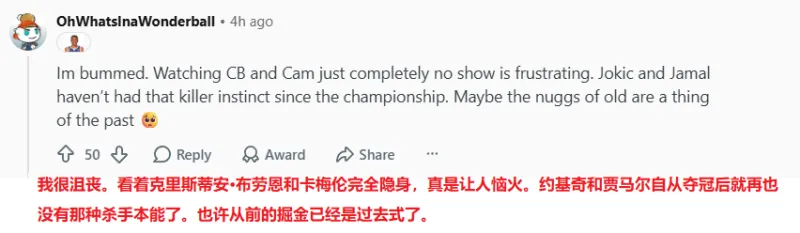 JRs之声:掘金全队没了心气,约基奇跑最快一次竟为打架?